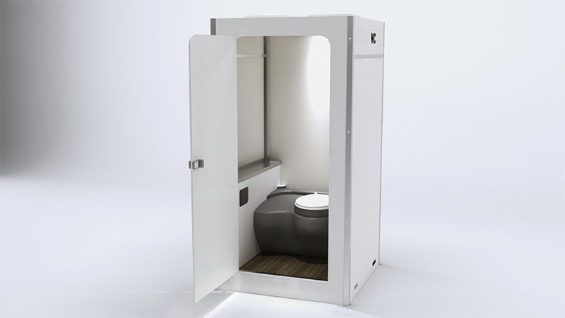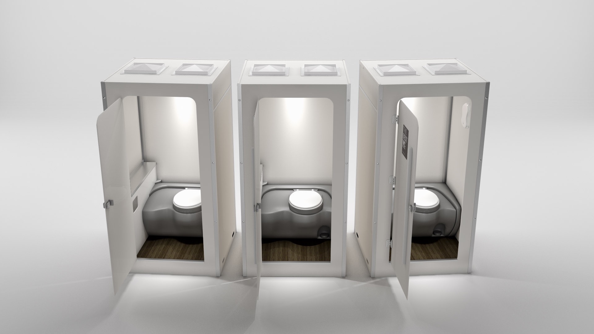 • Cabines Especiais, com desenho moderno, feitas de material não-plástico, na cor branca.