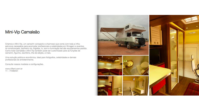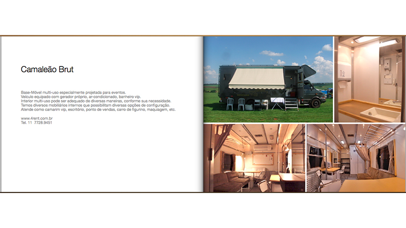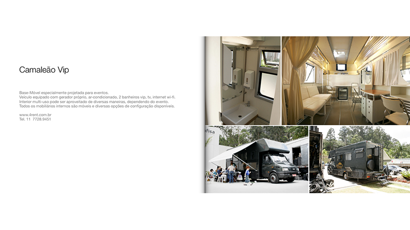 Camaleão Vip (8 metros), Camaleão Brut (8 metros), Camaleão Mini-Vip (4,5 metros), Trailer Vip (5 metros).